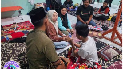 Ketua DPRD Kabupaten didampingi ketua komisi IV kunjungi posko yankes di Ponpes Mahad An Nur Desa Singowangi Kabupaten Mojokerto.(foto:erick)