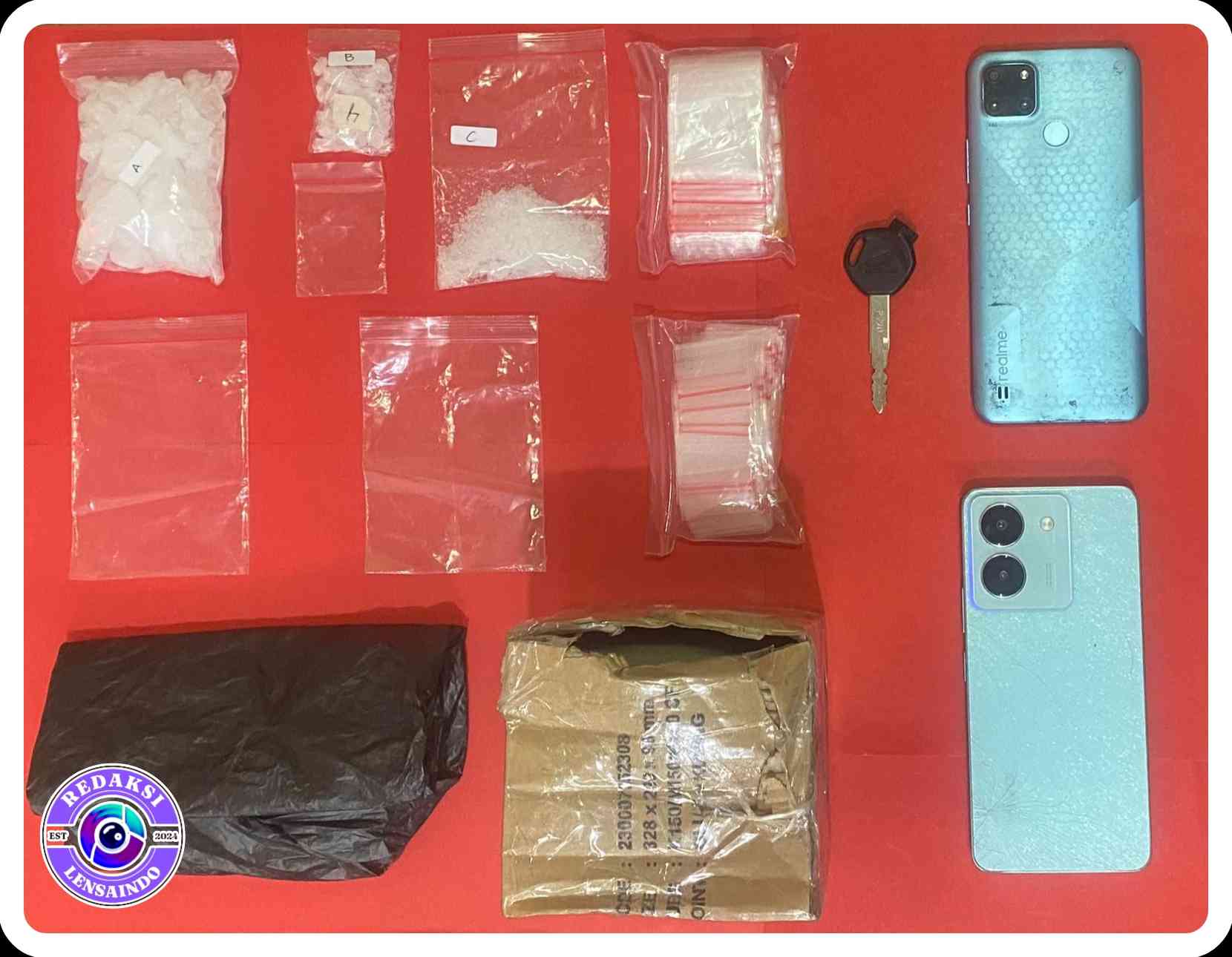 Dari tangan kedua tersangka, polisi berhasil menyita narkotika jenis sabu dengan berat total 84,3 gram. Selain itu, petugas juga mengamankan sejumlah barang bukti lain berupa plastik klip, dua unit telepon genggam, satu unit sepeda motor, serta barang bukti pendukung lainnya yang diduga digunakan dalam aktivitas peredaran narkoba.
