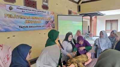 Mojokerto,lensaindo.id – Pemerintah Desa Wonorejo menggelar pelatihan memandikan jenazah di pendopo desa setempat, Kecamatan Trowulan, Kabupaten Mojokerto, Minggu (7/12/25). Kegiatan ini berlangsung aktif dan mendapat antusias tinggi dari warga yang ingin memperdalam pengetahuan tata cara perawatan jenazah sesuai syariat.