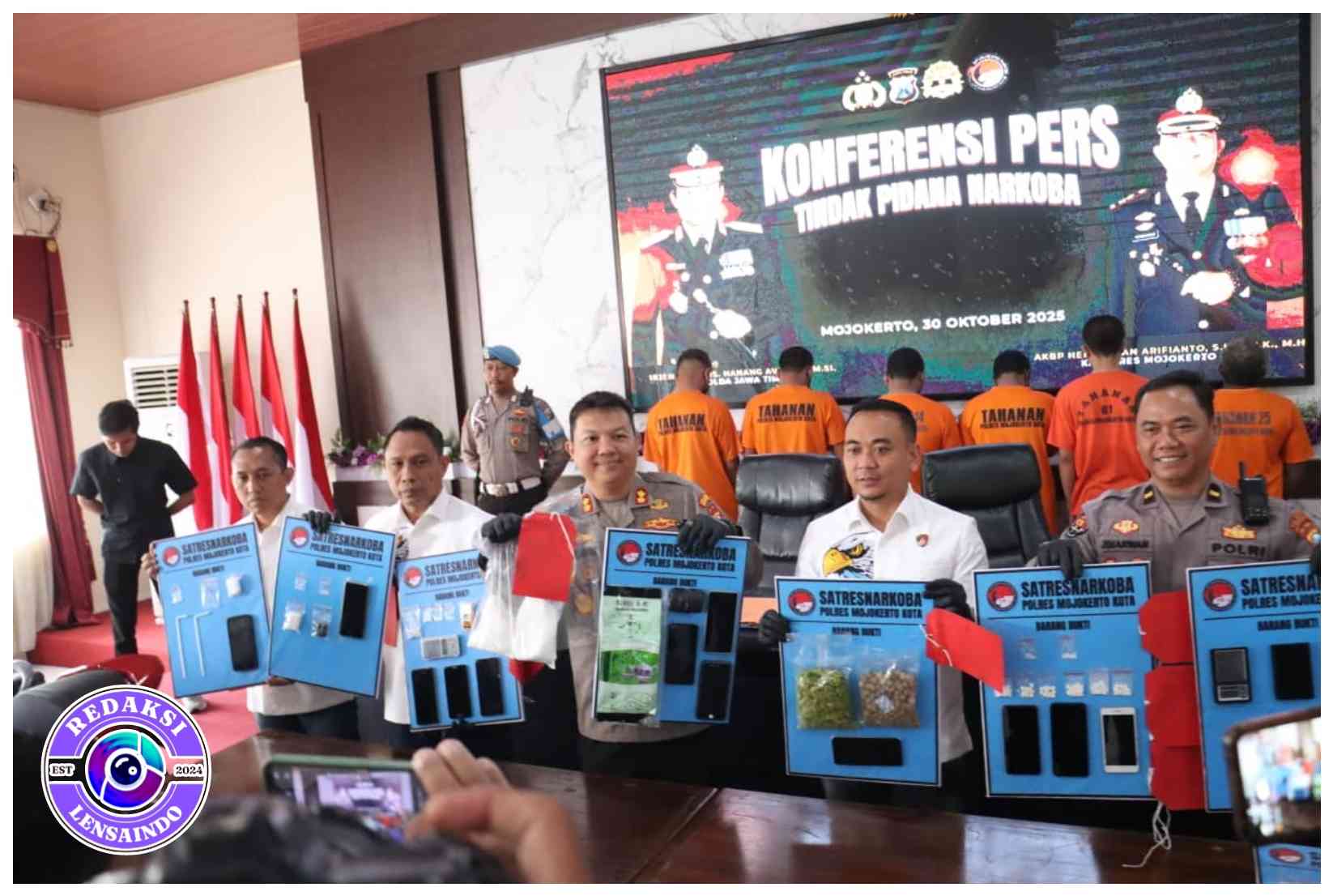 Pengungkapan itu disampaikan dalam konferensi pers di Aula Hayam Wuruk, Kamis (30/10/25). Kapolres Mojokerto Kota AKBP Herdiawan Arifianto memimpin langsung kegiatan tersebut didampingi Kasat Resnarkoba dan Kasi Humas.