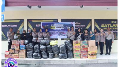 Bentuk kepedulian terhadap sesama, Polres Mojokerto Kota kirimkan bantuan logistik ke Aceh dan Sumatera.(foto:istimewa)
