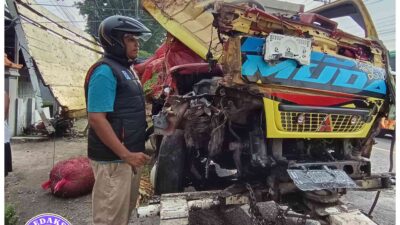 Truk pengangkut cabai tabrak pengendara motor hingga tewas ditempat di jalan raya ngrowo bangsal,(foto:HsnAsgf)