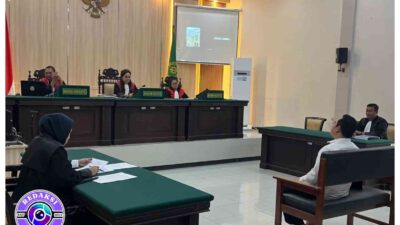 Oknum anggota polisi menjalani sidang terkait petasan yang meledak di pengadilan negeri mojokerto.(foto:istimewa)